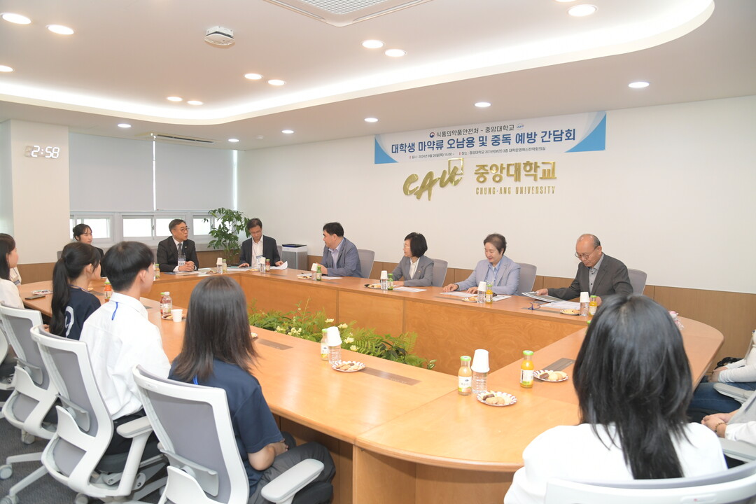 <식약처 오유경 처장이 지난 9월 26일 서울 동작구 중앙대학교에서 ‘청년 마약류 중독문제, 거절할 용기’라는 주제로 중앙대학교 학생들과 간담회를 갖고 있다.>