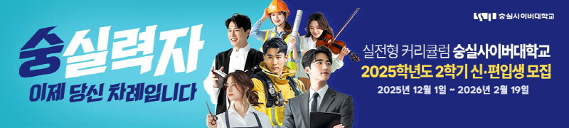 우리나라 최초의 사이버대학으로 글로벌 온라인 교육 트렌드를 선도하고 있는 숭실사이버대학교(총장 한헌수)가 오는 12월 1일부터 2026년 2월 19일까지 2026학년도 1학기 신편입생을 머집 하는 가운데, 예년보다 한층 풍성해진 장학혜택을 마련해 수험생들의 이목을 집중시키고 있다.