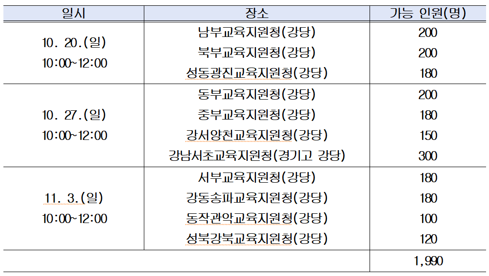 서울 관내 중학교 학부모들을 대상으로 하며, 사전 신청 없이 각 교육지원청별로 진행된다. 각 지원청별로 100명에서 200명까지 선착순 입장이 가능하다.