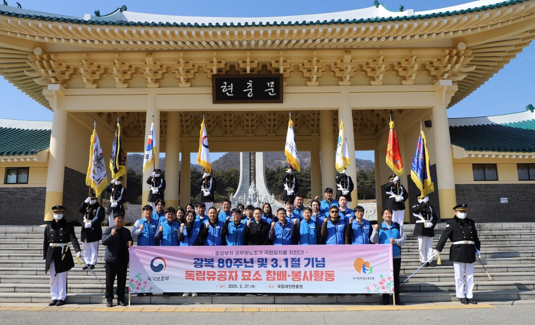 국공노는 3·1절을 앞둔 지난 2월 27일, 국립대전현충원에서 독립유공자 묘역 참배 및 정화 활동을 실시했다. 이번 행사는 국가보훈부(장관 강정애)와 협력하여 진행됐으며, 국공노 소속 지부 위원장 30여 명이 참석해 헌화, 비석 닦기 등 묘역 정비 활동을 펼쳤다.
