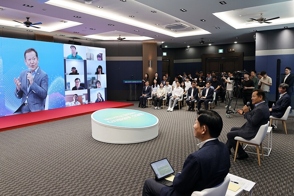 <이상민 행정안전부 장관과 디지털플랫폼정부위원회, 재외동포청이 7월 3일 모바일 재외국민증’ 발급 선포 기념행사에 참석해 간담회를 하고 있다.>