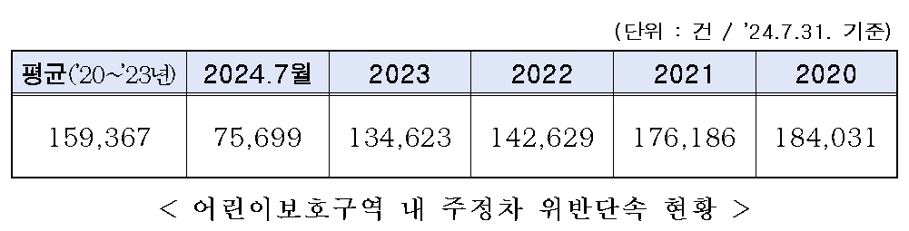 올해 7월 말까지 어린이보호구역 내 단속 건수는 총 75,699건으로, 지난해 같은 기간의 81,042건과 비교해 6.6% 감소했다. 이는 과태료 인상과 주정차 금지구역 지정, 그리고 지속적인 단속과 시민의식 향상 등이 주요 원인으로 보고 있다.