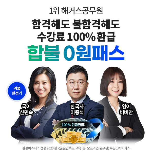 이에 해커스 챔프스터디의 공무원 교육 전문 브랜드 해커스공무원이 공무원 시험에서 합격해도, 불합격해도 100% 수강료를 환급해주는 ‘합불 0원 패스’를 선보였다.