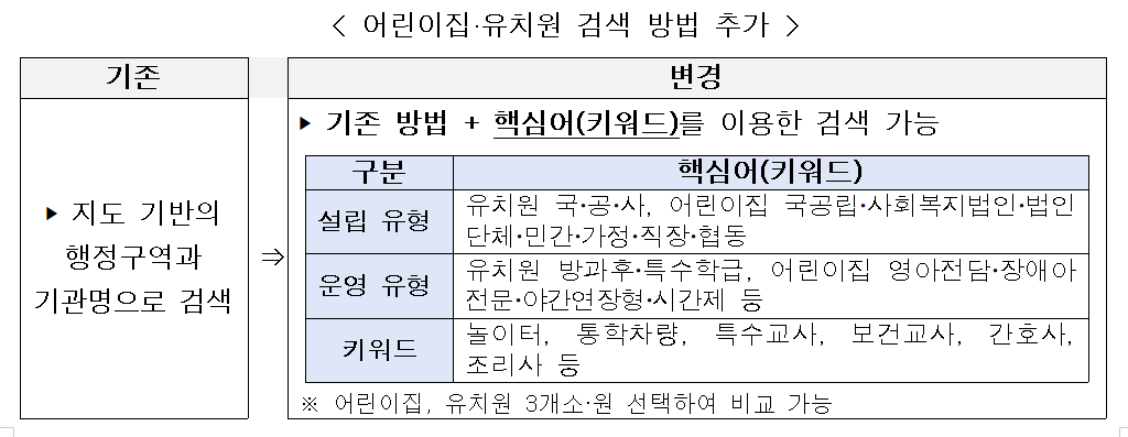 특히, ‘유보통합포털’은 학부모들이 자녀에게 맞는 어린이집과 유치원을 검색해 비교한 후 신청할 수 있도록 키워드 검색 기능을 추가해 접근성을 높였다. 영유아는 최대 3개의 어린이집, 유아는 최대 3개의 유치원에 개별 신청할 수 있다.