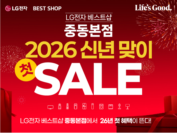 LG전자 베스트샵 중동본점 관계자는 “2026년 새해를 맞아 고객들이 체감할 수 있는 실질적인 혜택을 중심으로 행사를 준비했다”며 “가전 교체, 혼수, 입주를 계획 중인 고객이라면 이번 신년 세일을 통해 만족도 높은 쇼핑 경험을 하시길 바란다”고 전했다.