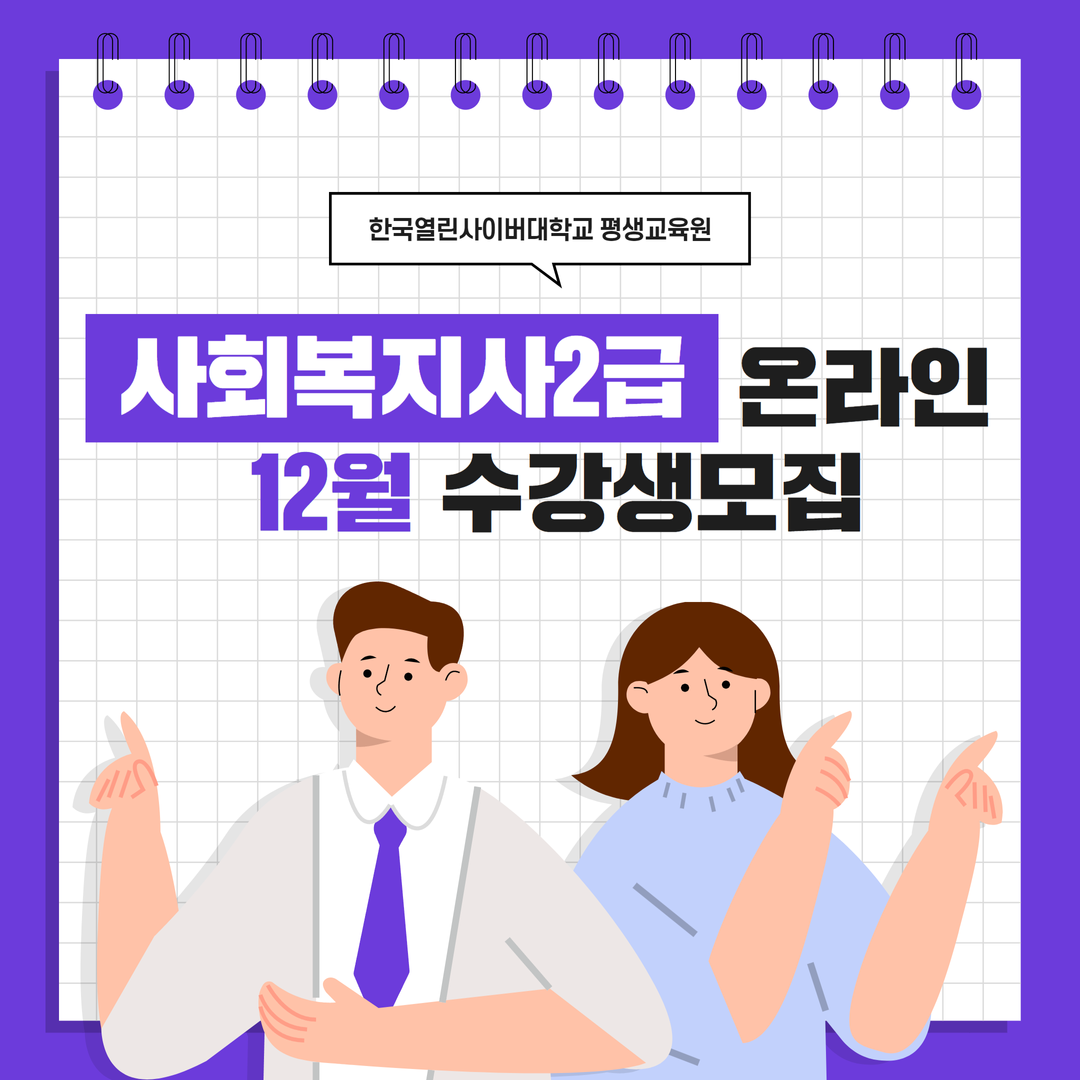 한국열린사이버대학교 평생교육원, 학력제한 없는 사회복지사2급 교육과정 12월 수강생 모집