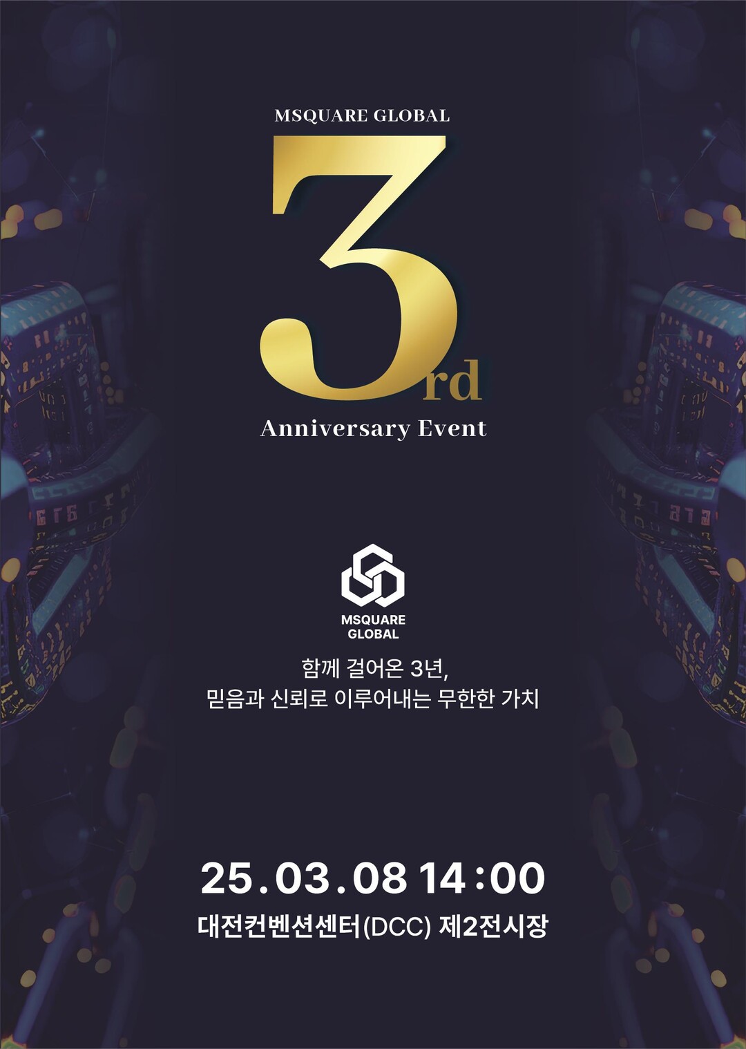 엠스퀘어글로벌(주)(이하 엠스퀘어)가 오는 3월 8일 대전컨벤션센터(DCC) 제2전시장에서 설립 3주년 기념행사를 개최한다. 이번 행사는 회사가 지난 3년간 이룬 성과를 기념하고, 앞으로의 성장과 발전을 위한 계획을 전국 커뮤니티 회원 및 파트너들과 공유하기 위해 마련된 자리다.