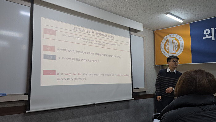 행사는 외대어학원 본사인 외대어학연구소 이진우 교육전략팀장의 강연으로 시작됐다. 그는 영어가 절대평가 체제라는 점에서 입시 전략의 큰 축이 될 수 있음을 강조하며, 대입에서 영어의 전략적 활용법을 설명했다. “영어는 모의고사 점수를 통해 자신의 예상 등급을 확인하고 부족한 부분을 보완할 수 있는 유리한 과목입니다. 수시에서 수능 최저학력기준에서 1, 2등급을 안정적으로 확보하면 다른 과목의 약점을 보완할 수 있는 입시전략 핵심 과목이 됩니다.” 그의 설명은 영어 절대평가가 수시 등 입시 준비에서 가지는 중요성을 다시 한번 상기시켰다.