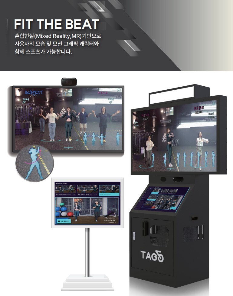 핏더비트는 K-POP과 숏폼을 융합하여 유저가 함께 즐길 수 있는 새로운 디지털 놀이 플랫폼이다. 혼합 현실(Mixed Reality, MR)을 기반으로 사용자의 모습 및 K-POP 아티스트 캐릭터와 함께 댄스가 가능하며 녹화기능을 통해 숏츠, 릴스, 틱톡 형식의 영상 제작 및 스마트폰 전송까지 가능하다. 카메라 1대로 1명의 사용자만 인식했던 모션인식 알고리즘을 다수 인식 알고리즘으로 개발에 성공하여 AI 모션인식 기술을 통해 최대 4명의 유저까지 사용이 가능한 제품이다.