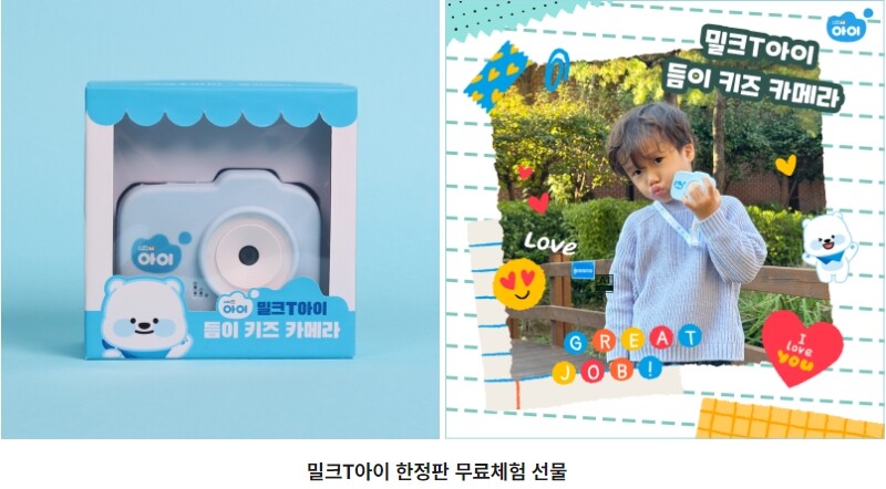 한편 밀크T아이 홈페이지에서는 전면 리뉴얼 기념 이벤트를 진행 중이다. 무료 체험 시, 한정판 ‘듬이 키즈 카메라’가 증정되며, 퀴즈 이벤트 참여자 중 추첨을 통해 푸짐한 선물도 받을 수 있다.