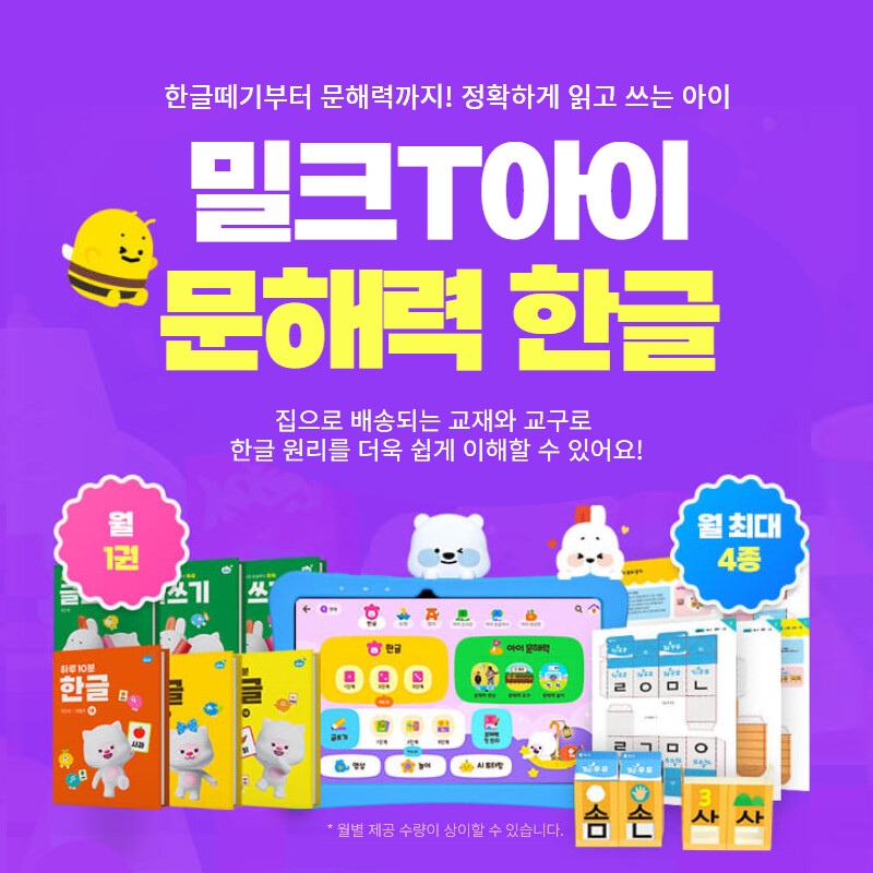 밀크티아이의 한글 완전 학습 커리큘럼은 30년간 영유아 한글 교육을 설계해 온 전문가들이 개발한 과학적이고, 체계적인 한글 완성 프로그램이다.