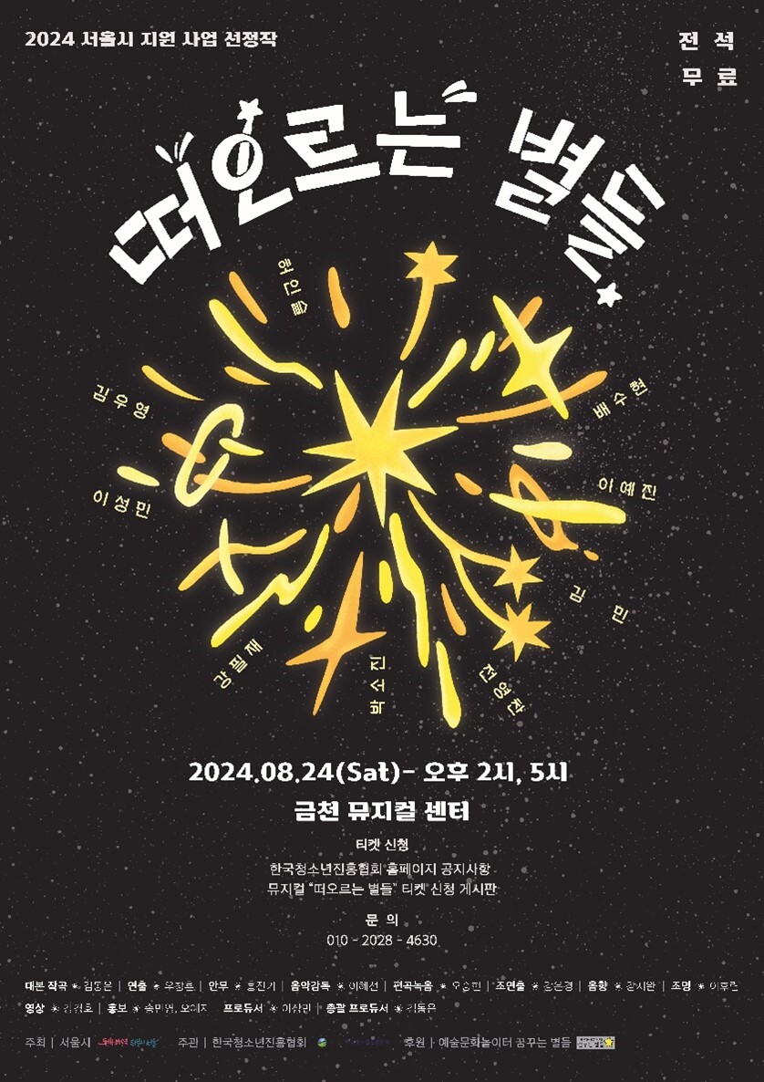(사)한국청소년진흥협회는 24년 청소년 통일 인식개선을 위한 서울시 지원사업에 선정되어 창작뮤지컬 ‘떠오르는 별들’을 금천뮤지컬센터 공연장에서 오는 8월 24일(토) 오후 2시, 5시 총 2회 개최한다고 밝혔다.