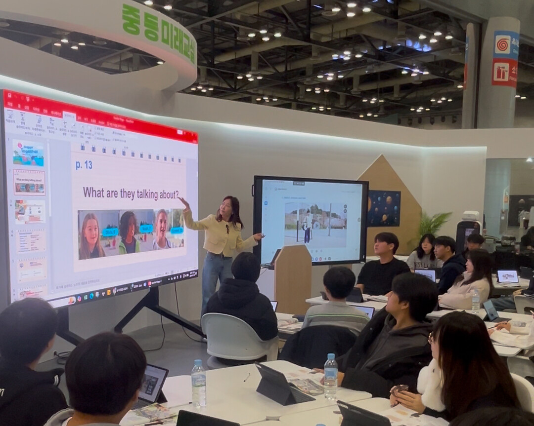 특히 현직 중학교 영어 교사와 학생들이 함께 참여해 AI 디지털교과서를 활용한 수업 사례를 생동감 있게 소개하여 박람회를 찾은 선생님과 학부모들로부터 큰 호응을 얻었다. 본 행사를 통해 AI 디지털교과서를 보다 실질적으로 이해하고 이를 실제 수업에 적용할 수 있는 아이디어를 얻을 수 있을 것으로 기대된다.