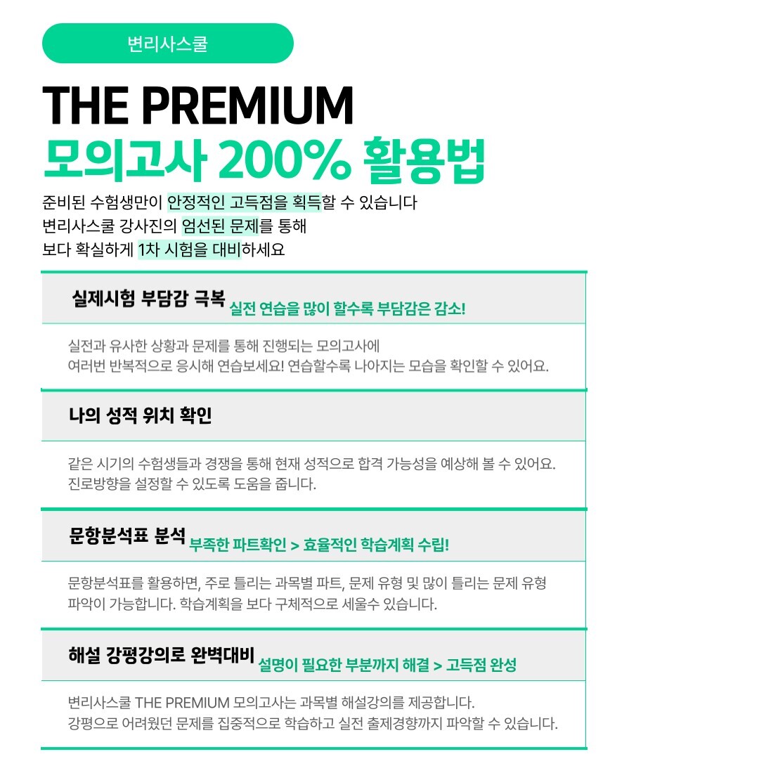 변리사스쿨에서 진행하는 The Premium 모의고사의 경우, 학습진도에 맞춰 월말모의고사를 진행한다.