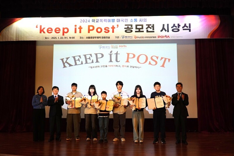 [피앤피뉴스=마성배 기자] 푸른나무재단은 우체국금융개발원, 우체국시설관리단과 함께 진행한 학교폭력 극복 메시지 공모전 ‘Keep it Post’에서 총 6편의 감동적인 사연을 최종 선정했다.