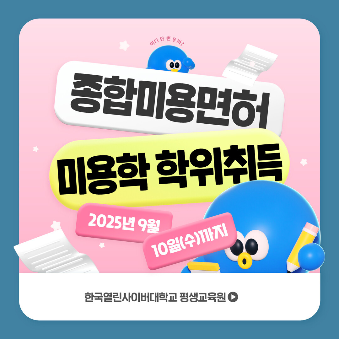 한국열린사이버대학교 평생교육원(이하 평생교육원)은 오는 9월 10일까지 종합미용면허증 취득 과정의 수강생을 모집한다고 밝혔다. 이번 학기는 9월 11일 개강하며, 학점은행제 기반 교육과정과 다양한 자격증 취득 기회를 제공한다.