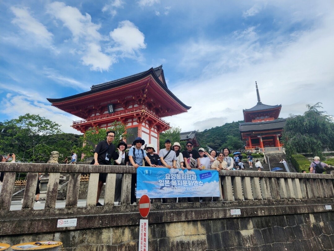 요양복지학과 재학생 및 졸업생 등 13명으로 구성된 연수단은 일본 효고현 고배와 니시노미야, 신노미야, 교토 등의 지역을 찾아 우리나라보다 앞서 초고령사회에 진입한 일본의 개호복지현황을 비롯해 아동복지 실천 현장 등을 직접 경험해보는 시간을 가졌다.