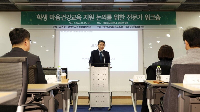 <이주호 부총리 겸 교육부장관은 지난해 11월 24일(금), 대한상공회의소에서 열리는 학생 마음건강교육 지원 논의를 위한 전문가 워크숍에 참석했다. 사진=교육부>