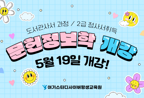학점은행제 원격평생교육기관인 여기스터디사이버평생교육원은 내달 19일 원격수업을 통한 문헌정보학 학위취득 과정을 개강하고 수강생을 모집한다고 24일 밝혔다.