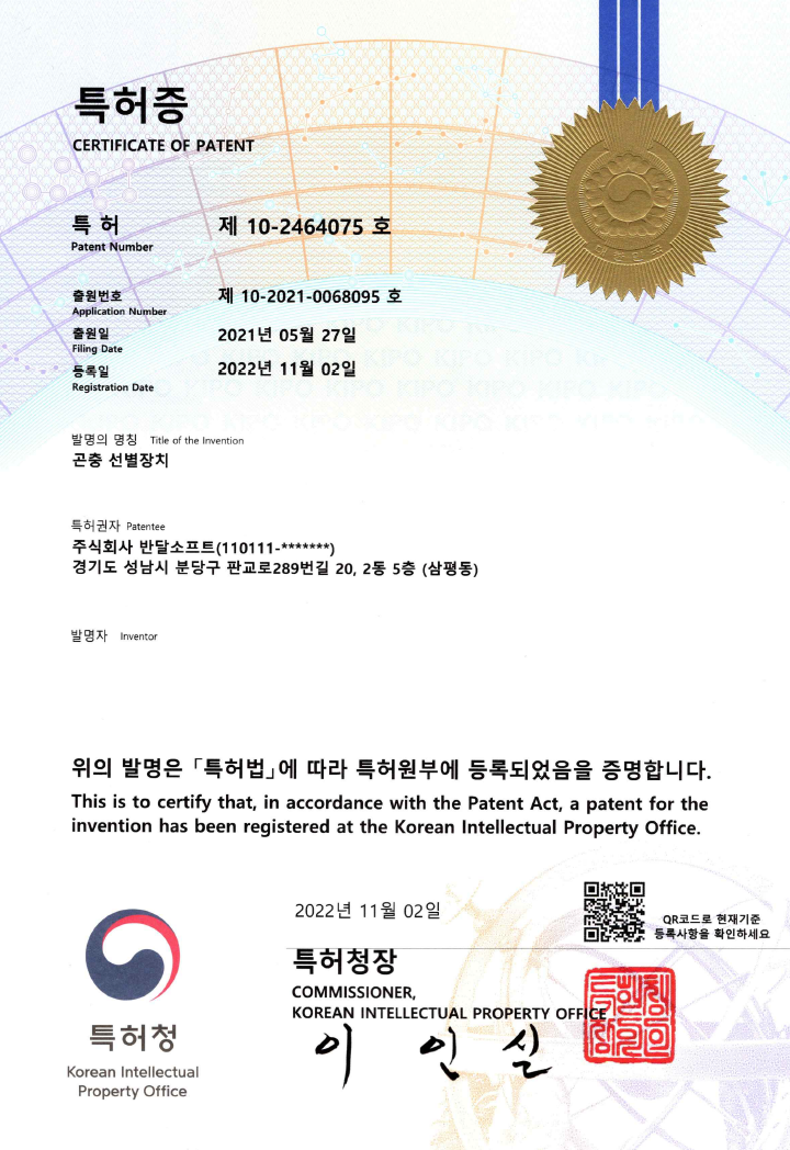 귀뚜라미는 사육 및 판매 과정에서 소·중·대 등 다양한 크기로 분류해 출하해야 하지만, 기존에는 대부분 수작업에 의존해 시간과 인력이 과다하게 소요되는 문제가 있었다. 반달소프트는 이러한 문제를 해결하기 위해 귀뚜라미의 생태적 특성과 사육 환경을 반영한 자동 선별기를 자체 개발했으며, 해당 기술에 대해 특허를 취득했다.