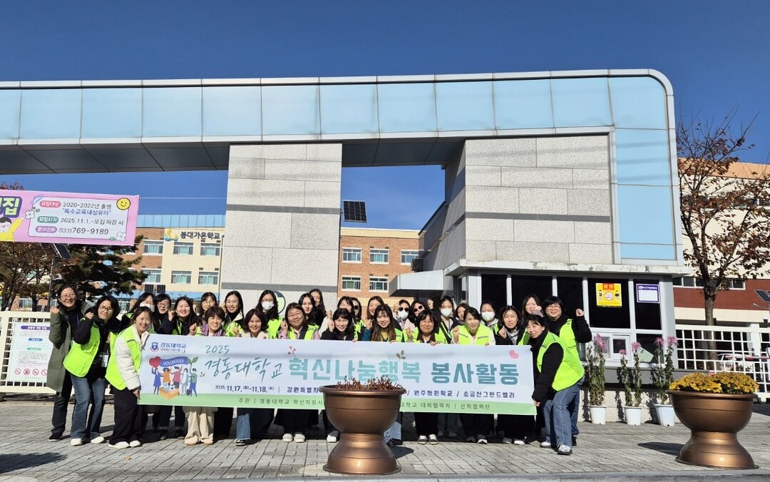 경동대학교산학협력단(단장 신우섭)은 17~18일 강원도 원주에서 “2025 경동대학교 혁신·나눔·행복 봉사”활동을 펼쳤다고 밝혔다. 경동대 대학혁신지원사업의 하나인 이번 봉사에는 경동대 교직원과 경동대산학혁력단 산하 수탁 기관 종사자 등 50명이 참여하였다.