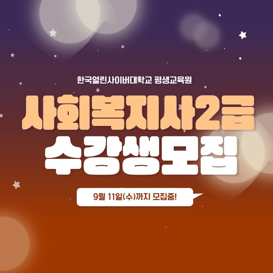 한국열린사이버대학교 평생교육원은 사회복지사2급 자격증 수강생을 오는 11일 수요일까지 모집할 예정이다. 개강일은 12일 목요일이다.