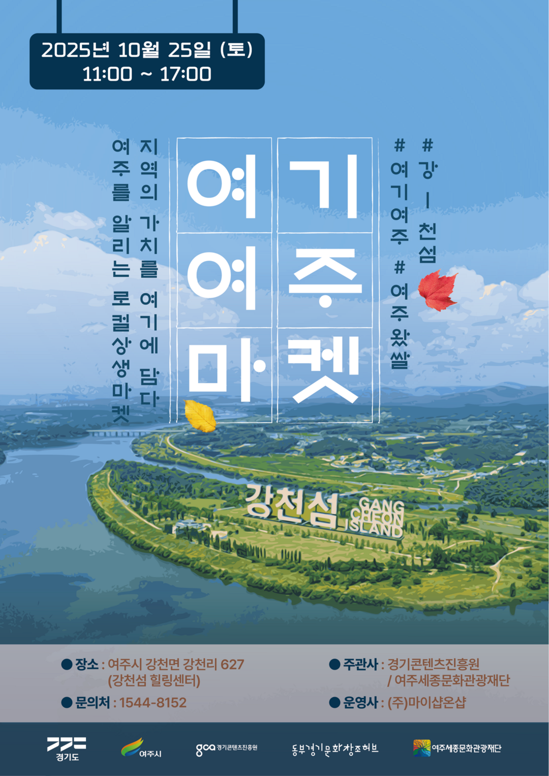 [피앤피뉴스=마성배 기자] 여주시와 경기콘텐츠진흥원(원장 탁용석, 이하 경콘진)은 오는 10월 25일(토), 남한강의 풍경과 울창한 숲길이 어우러진 강천섬에서 ‘2025 여주시 지역 특화 콘텐츠 기업 플리마켓 – 여기여주마켓(강천섬)’을 개최한다고 밝혔다.