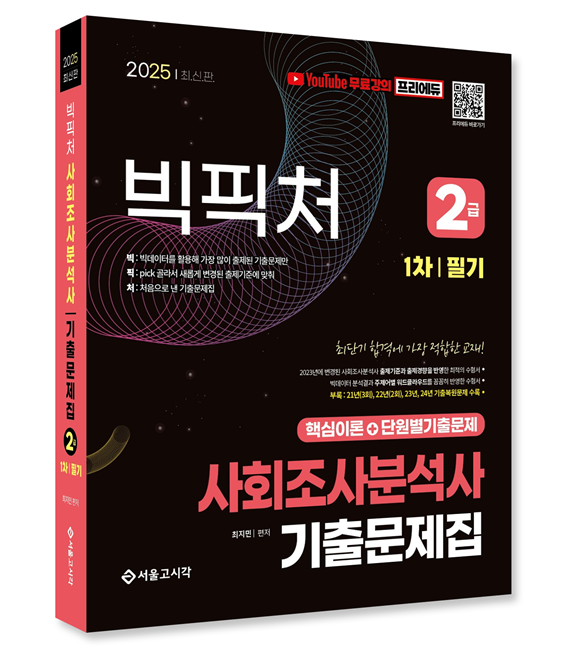 도서출판 서울고시각은 사회조사분석사 2급 필기 시험을 대비하여 2025 빅픽처 사회조사분석사 2급 필기 기출문제집(무료강의)을 출간했다.