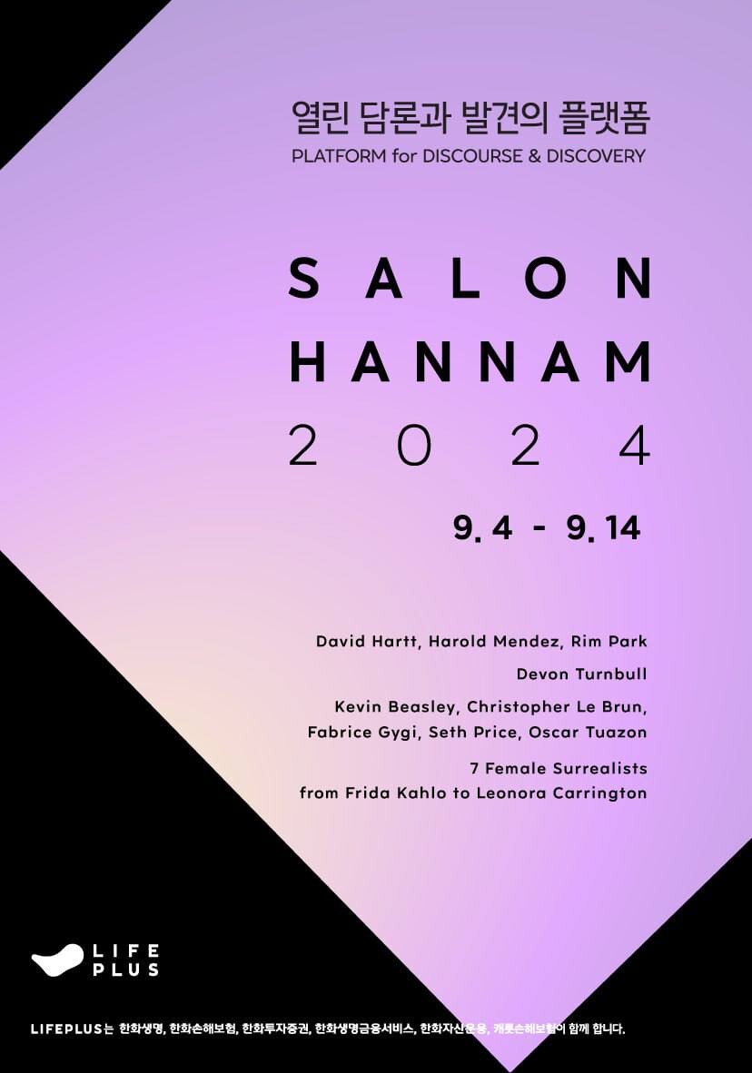 한화 금융 계열사(한화생명, 한화손해보험, 한화투자증권, 한화생명금융서비스, 한화자산운용, 캐롯손해보험)의 공동 브랜드 라이프플러스(LIFEPLUS)가 주최하는 특별 전시 프로젝트 《살롱한남 2024》가 오는 9월 4일부터 14일까지 한남동 독서당로에 위치한 한화손해보험 한남 사옥(구 리플레이스 한남)에서 열린다.