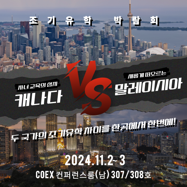 캐나다 전문 우리에듀케이션과 말레이시아 전문 포커스에듀케이션이 공동으로 오는 2024년 11월 2~3일(토,일)삼성역 코엑스에서 조기유학 박람회를 개최한다고 밝혔다.