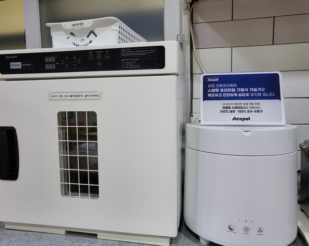 성모 산후조리원 관계자는 “프리미엄 가습기 스텐팟은 100℃ 고온으로 물을 끓여 세균 걱정 없는 순수 수증기만을 분사하고, 신생아 화상 위험을 줄이기 위한 안전 설계까지 갖춰 가장 적합한 제품이었다”고 설명했다.