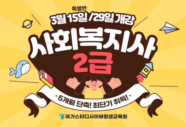 여기스터디사이버평생교육원, 최단기 취득 사회복지사 2급 3월 15일·29일 개강