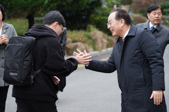[피앤피뉴스=이수진 기자] 하윤수 부산광역시교육감이 16일 오전 7시 30분 부산진구 경남공업고등학교에서 2024학년도 대학수학능력시험을 치르는 수험생들을 격려하고 있다.