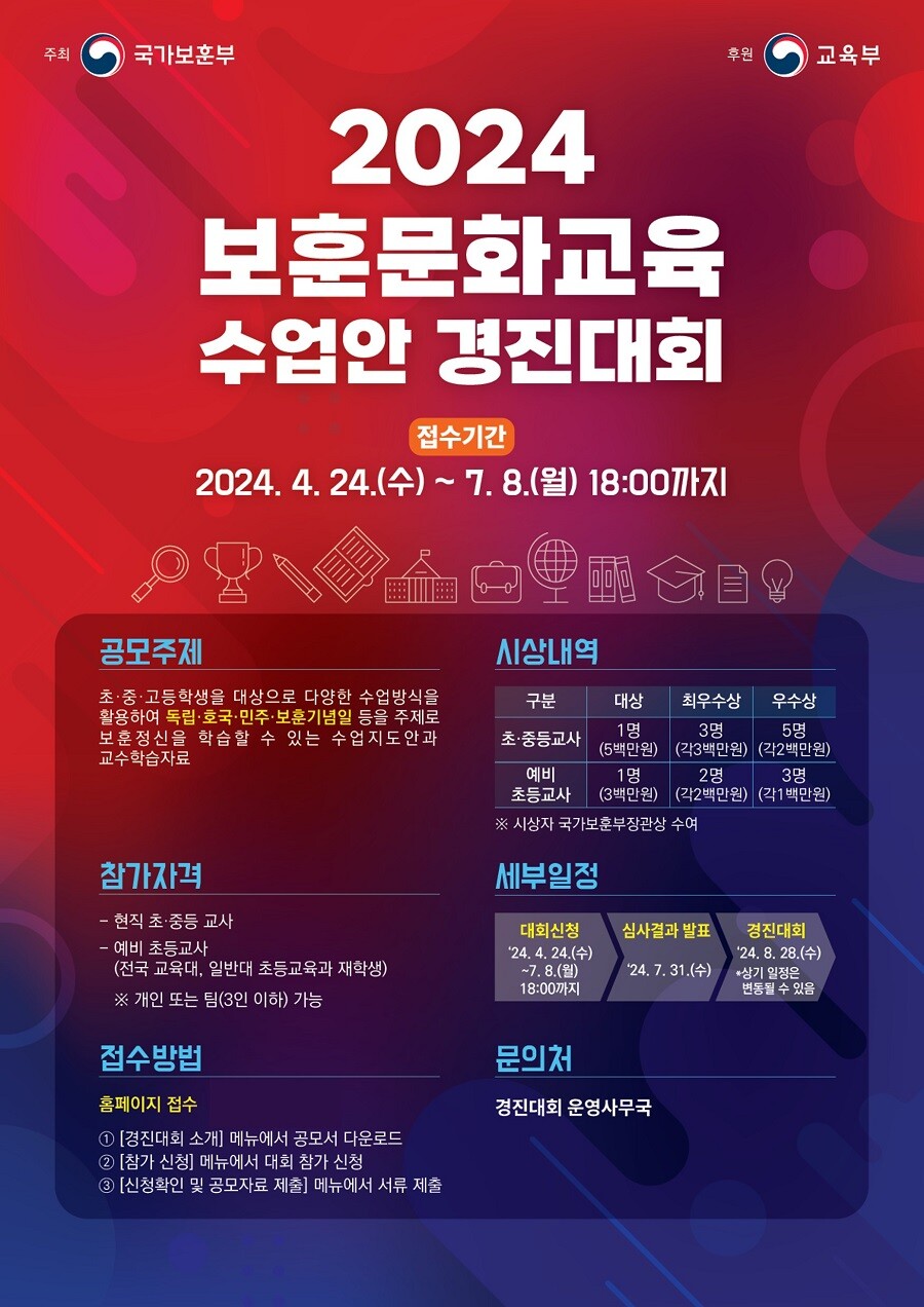 국가보훈부, '24 보훈문화교육 수업안 경진대회' 공모전 진행