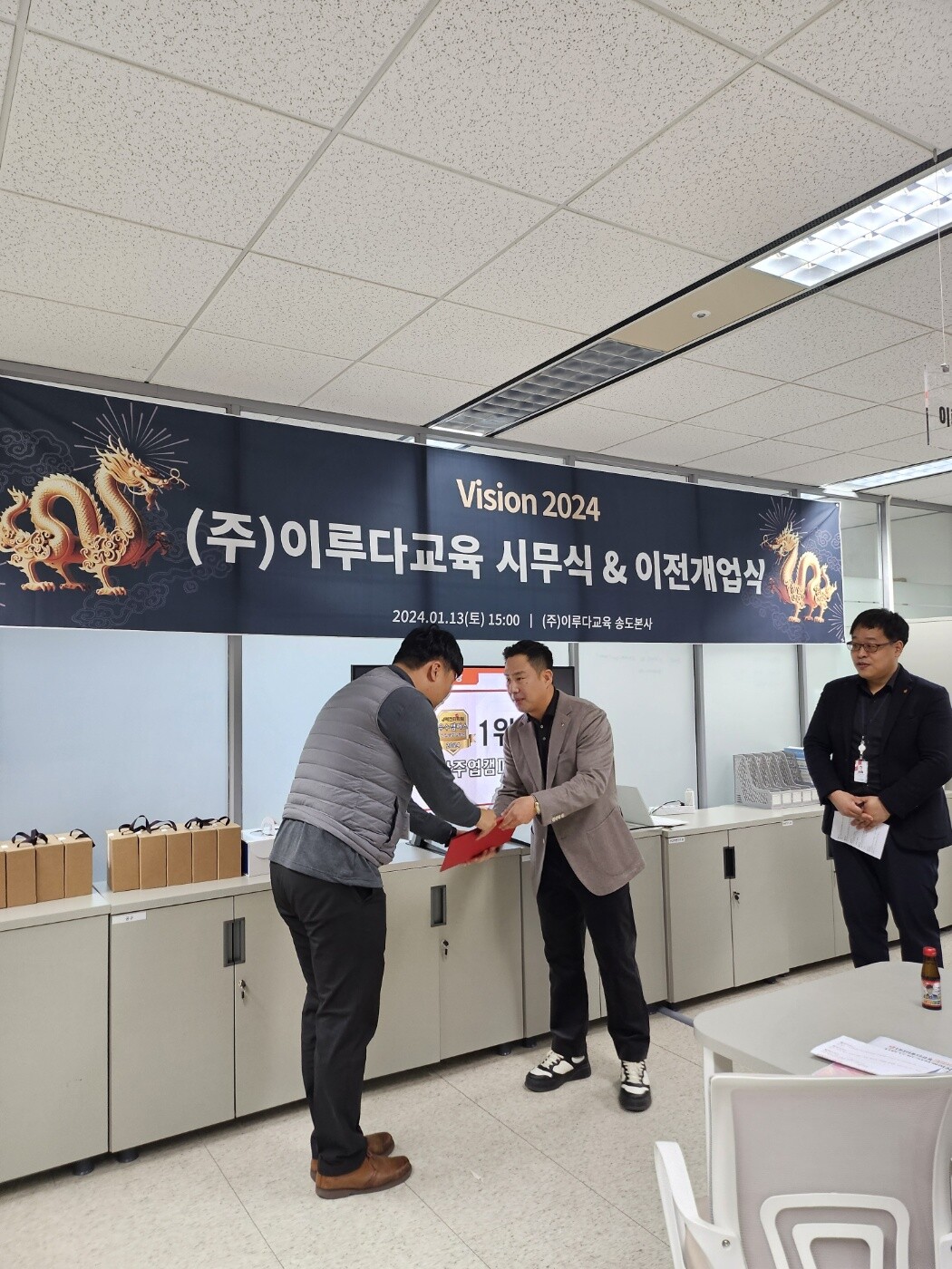 이외 중요한 의제들이 시무식 겸 이전개업식에서 다루어 졌으며, 특히 프랜차이즈 가맹 사업의 활성화를 골자로하는 ㈜이루다교육의 ‘VISION 2024’가 핵심으로 다루어 졌다.