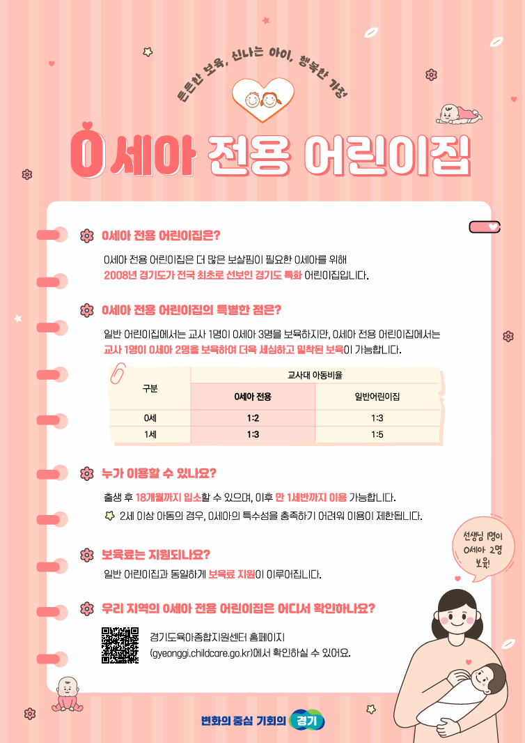 경기도, 0세아 전용 어린이집 365곳으로 확대...“영아에겐 맞춤 돌봄을”