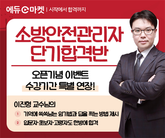 에듀마켓은 소방안전관리자 시험을 대비한 소방안전관리자 단기합격반을 오픈하여 서비스하고 있다.