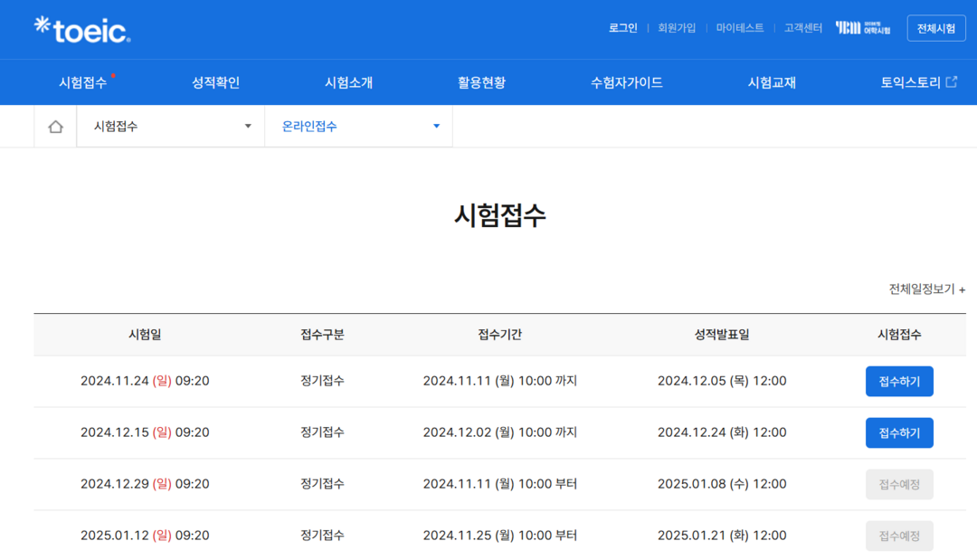 한편, 11월 24일과 12월 15일에 치러질 토익 시험 접수는 현재 진행 중이다.