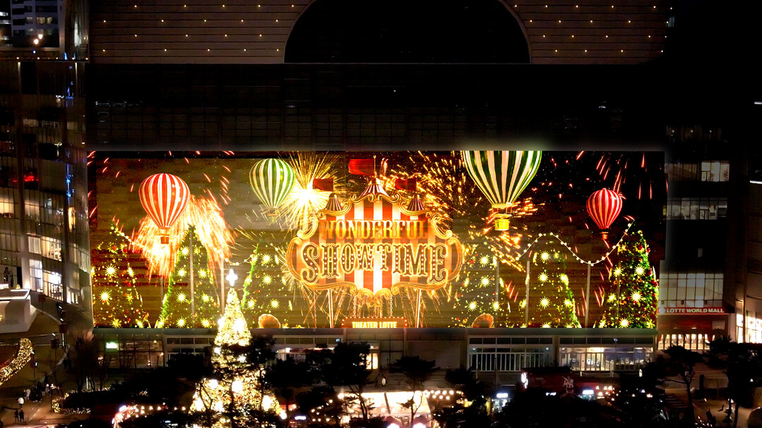 롯데물산은 서울 잠실에 위치한 롯데월드몰을 대상으로 크리스마스 미디어파사드 쇼 ‘원더풀 쇼타임(Wonderful SHOWTIME)’을 선보였다. 이는 예술의 트렌드를 선도하는 예술기획사 에이플랜컴퍼니가 초대되며 롯데의 특별한 크리스마스를 빛으로 수 놓는다.