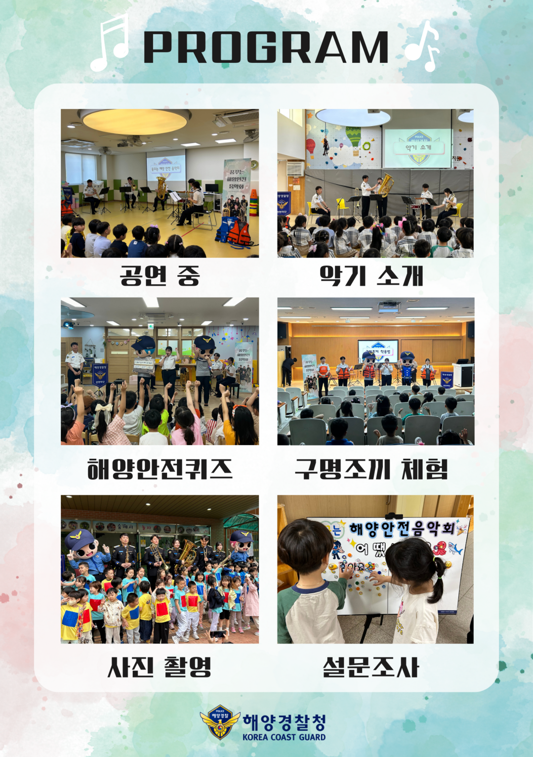 공연을 미리 확인하고 싶은 학부모와 교사들은 유튜브에서 ‘해양경찰악대 꿈꾸는 해양안전 음악회’를 검색하면 연주 영상을 볼 수 있으며, 행사 관련 소식은 해양경찰악대 인스타그램(@k.c.g.band)에서도 확인 가능하다.