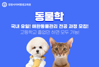 장원사이버평생교육원 생명산업전문학사 애완동물관리 전공은 오는 3월 개강하며, 선착순으로 수강생을 모집한다. 자세한 내용은 홈페이지에서 확인 가능하다.