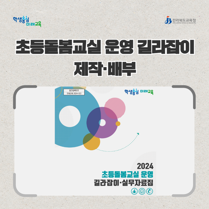 [피앤피뉴스=마성배 기자] 전라북도교육청(교육감 서거석)은 초등돌봄교실 운영을 위한 ‘2024 초등돌봄교실 운영 길라잡이·실무자료집’을 제작해 각급 학교에 배부했다.