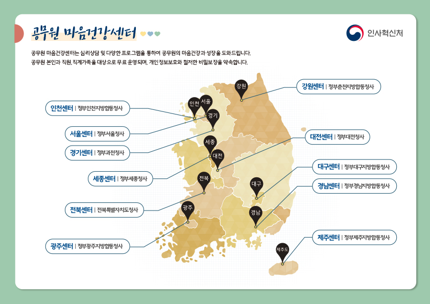공무원 마음건강센터는 전북센터를 포함해 서울과 경기, 세종, 대전, 대구, 광주, 강원 등 전국 11곳에서 운영 중이다. 인사혁신처에 따르면 지난해 기준 약 4만1천 명의 공무원이 센터를 이용했으며, 공직자들이 심리적 안정을 회복하고 직무 부담을 관리하는 지원 창구로 활용되고 있다.