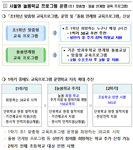 시교육청은 기존의 방과후학교 연계형 돌봄과 방과후학교 프로그램을 결합해 2시간의 무료방과후 프로그램과 1시간의 추가 돌봄을 제공할 예정이며, 3월 중 운영을 시작할 계획이다.