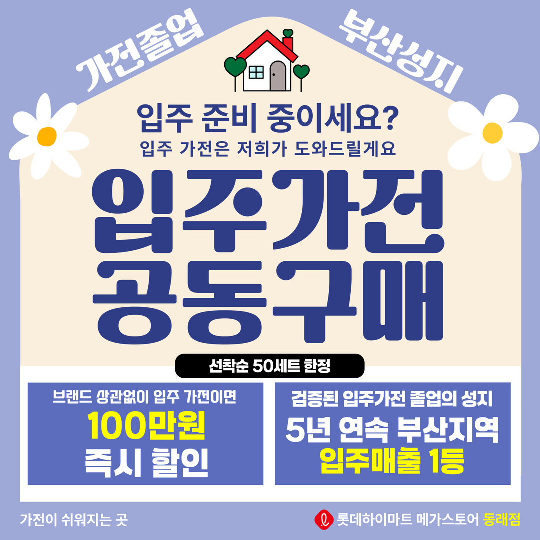 부산 동래구의 중심 상권에 위치한 롯데하이마트 동래점이 두산위브더제니스오션시티 입주 고객과 예비 신혼부부를 위한 입주가전 공동구매 행사를 개최한다.