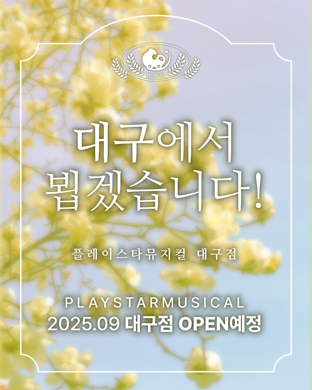 플레이스타뮤지컬 대구점은 현재 오픈 준비 중이며, 자세한 모집 일정 및 프로그램 구성은 플레이스타뮤지컬 공식 홈페이지와 SNS 채널을 통해 순차적으로 공개될 예정이다.