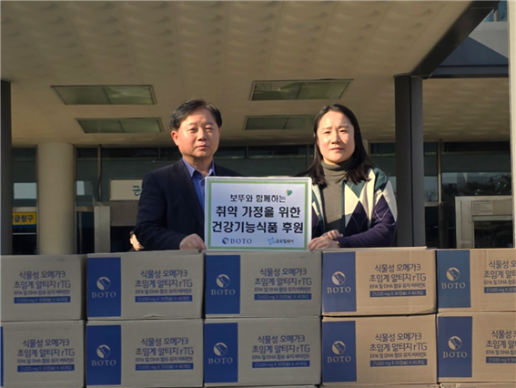 [피앤피뉴스=이수진 기자] 국내·외 구호단체 글로벌쉐어(대표 고성훈)는 (주)비앤에프(대표 김준범)의 헬스케어 브랜드 보뚜(BOTO)로 부터 3,600만 원 상당의 어린이 비타민 및 오메가3 제품을 기부받았다고 26일 밝혔다.