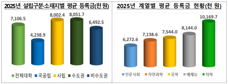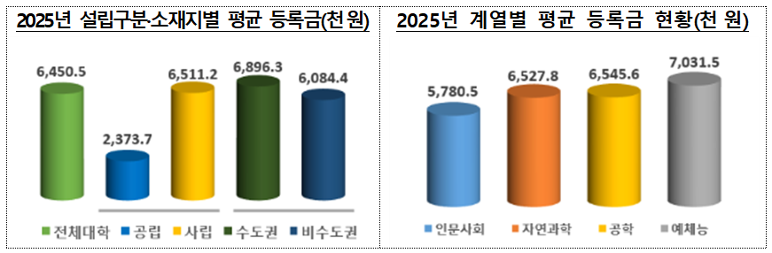 소재지별로는 수도권 대학이 평균 805만 1,700원으로 비수도권(649만 2,500원)보다 약 150만 원 이상 높은 수치를 보였다.