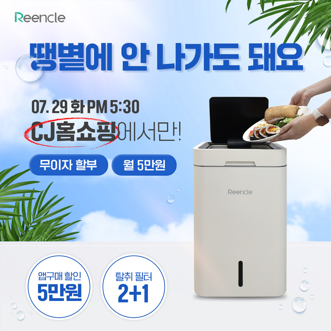 미생물 음식물처리기 브랜드 린클(Reencle)이 오는 7월 29일(화) 오후 5시 30분부터 60분간 cj홈쇼핑 방송을 통해 파격적인 할인 및 사은품 증정 이벤트를 진행한다고 밝혔다.