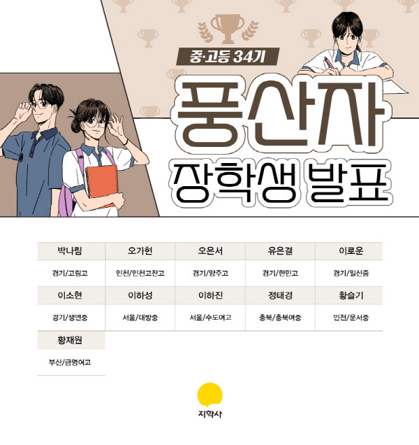 지학사, “장학금 총 600만 원, 제34기 풍산자 장학생 11명 선발”